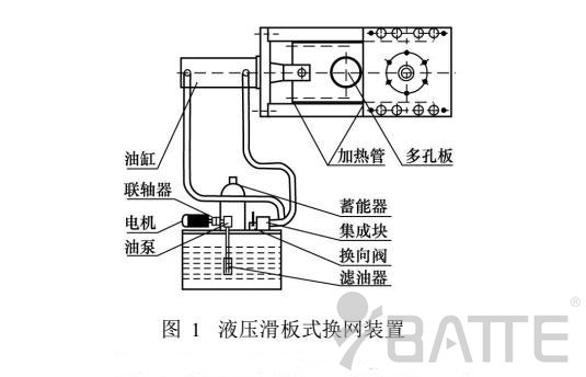 液壓滑板式連續(xù)換網(wǎng)裝置,它通過液壓缸活塞的推力,將裝有兩個分流過濾網(wǎng)孔的滑板往復(fù)移動,臟網(wǎng)推出更換,新網(wǎng)安裝后推進(jìn),實現(xiàn)瞬間快速換網(wǎng)。該換網(wǎng)裝置結(jié)構(gòu)緊湊,操作方便快捷,在不停機(jī)狀態(tài)下?lián)Q網(wǎng)工作在1-2s內(nèi)就可完成。實現(xiàn)不停機(jī)換網(wǎng),可避免因換網(wǎng)而造成的生產(chǎn)停頓、原材料與能源損失,有利于節(jié)約成本,在塑料擠出生產(chǎn)線上使用較多。但液壓滑板式器的換網(wǎng)裝置在結(jié)構(gòu)上存在著一個較大缺陷。
